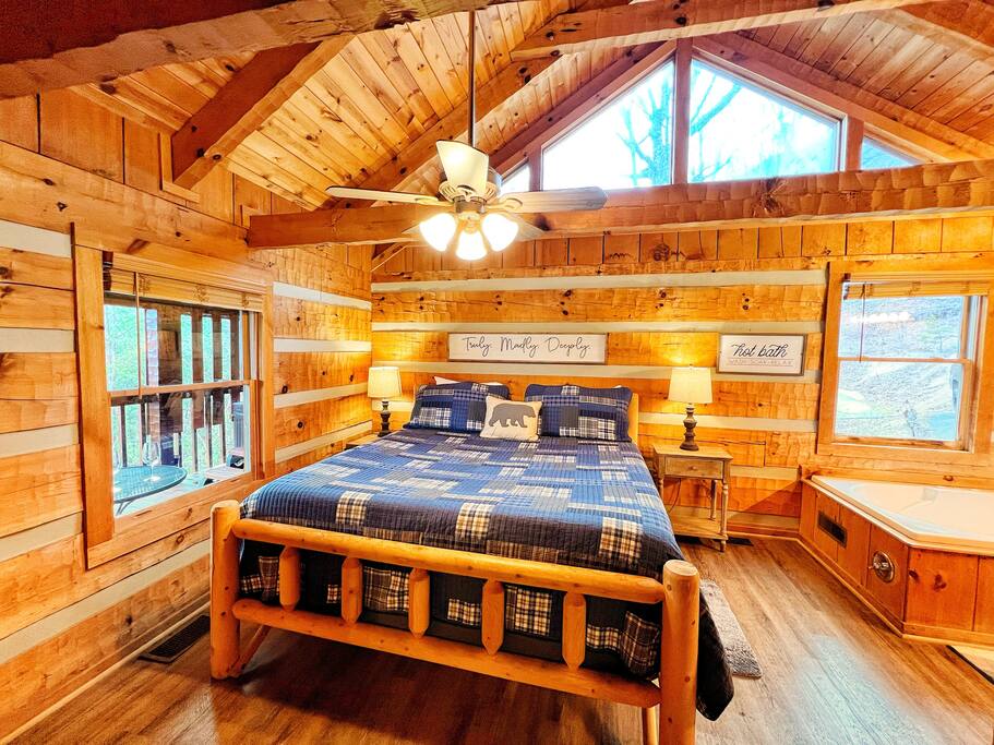 Small residential area with other similar cabins. Paved roads. Some areas with steep roads. Located ~ 10-15 minutes from the Parkway in PF. As mentioned, the driveway can be challenging at first. This is not unique to our cabin. It is just the nature of the location but be aware. The roads to the cabin are paved and in good condition; however, the road leading to the cabin does have a fairly steep incline. This is the mountains! Be aware that the driveway can be a little challenging to back out of, but we have placed markers to help guide you whether you prefer to pull in or back in. After the first time or two of doing it youβll have it down. We do not give refunds for road conditions. ***Be sure to use the main road, Bluff Mountain Rd, to get into and out of the cabin. Please do not try to go the "back way" on the gravel road unless you have a high clearance vehicle. We do not recommend this approach to the cabin, and it is not shorter or quicker.***