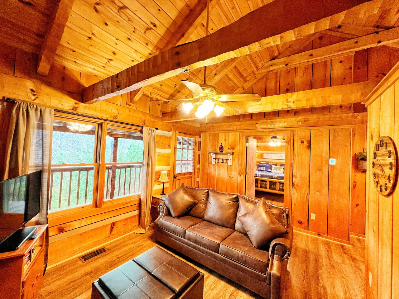 Small residential area with other similar cabins. Paved roads. Some areas with steep roads. Located ~ 10-15 minutes from the Parkway in PF. As mentioned, the driveway can be challenging at first. This is not unique to our cabin. It is just the nature of the location but be aware. The roads to the cabin are paved and in good condition; however, the road leading to the cabin does have a fairly steep incline. This is the mountains! Be aware that the driveway can be a little challenging to back out of, but we have placed markers to help guide you whether you prefer to pull in or back in. After the first time or two of doing it youβll have it down. We do not give refunds for road conditions. ***Be sure to use the main road, Bluff Mountain Rd, to get into and out of the cabin. Please do not try to go the "back way" on the gravel road unless you have a high clearance vehicle. We do not recommend this approach to the cabin, and it is not shorter or quicker.***